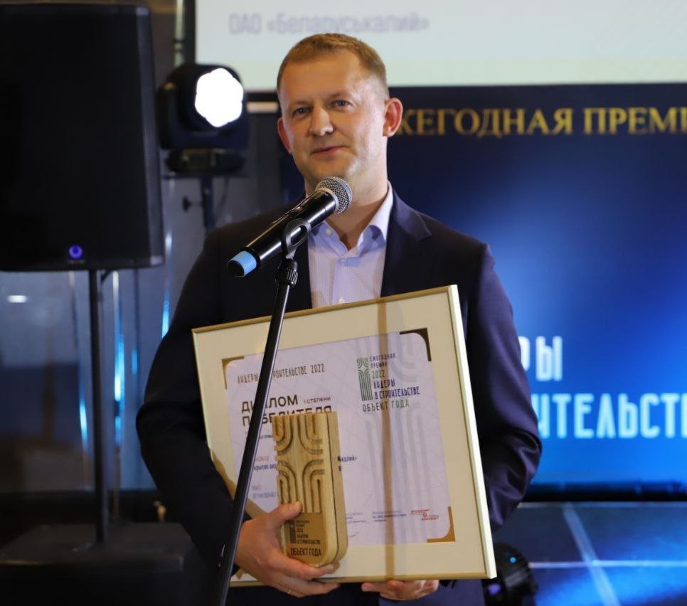 "Беларуськалій" узнагароджаны дыпломам пераможцы 1 ступені ў намінацыі "Лепшы аб'ект прамысловага будаўніцтва" ("Аб'ект года" - Петрыкаўскі горна-абагачальны комплекс). Нагадаем, прамысловае прадпрыемства пабудавана з мэтай павелічэння магутнасці ААТ "Беларуськалій" і павышэння экспартнага патэнцыялу Рэспублікі Беларусь. Узнагарода ўручана намесніку генеральнага дырэктара Таварыства па капітальным будаўніцтве-начальніку УКБ Ігару Андрасюку. Цырымонія ўзнагароджання, дзе былі таксама вызначаны найлепшыя будаўнічыя прадукты і кампаніі, прайшла ў сталіцы Беларусі.