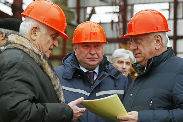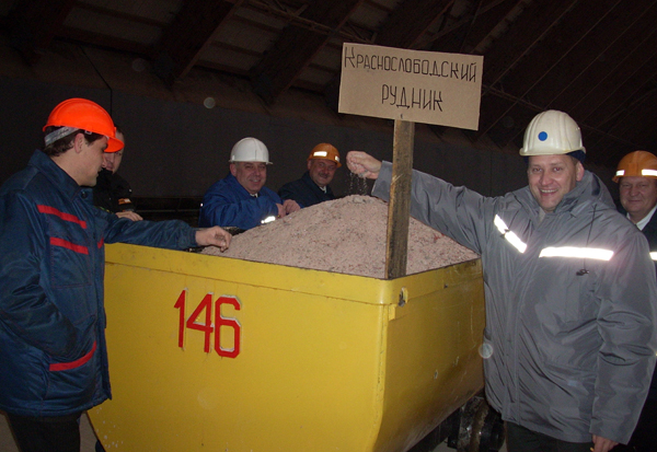 Кіраўнікі ААТ "Беларуськалій" на 1-ай гадавіне эксплуатацыйнай дзейнасці Чырвонаслабодскага рудніка.