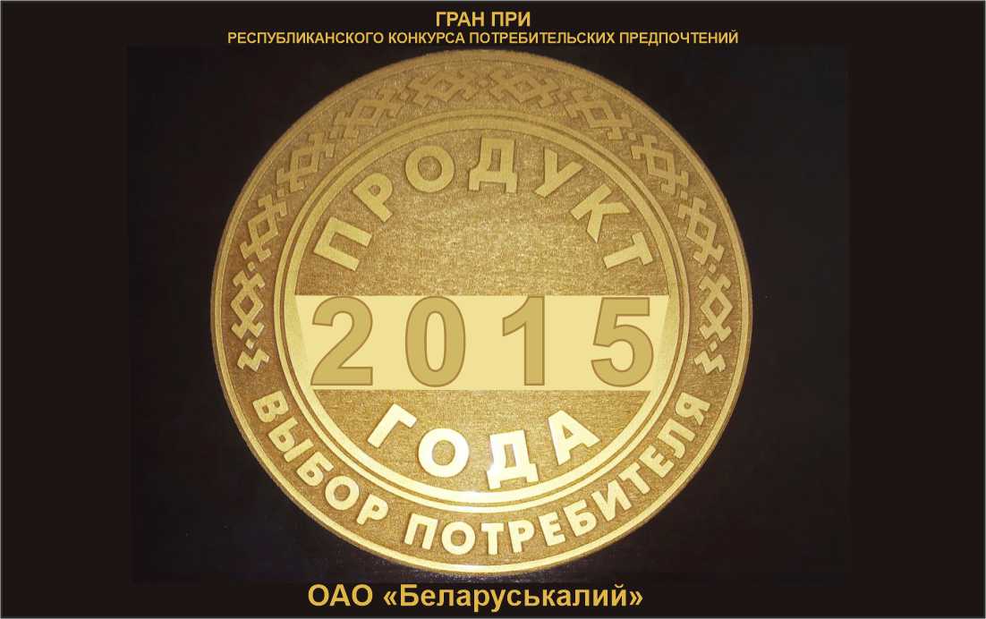 Харчовая соль ААТ "Беларуськалій" па выніках XVII Рэспубліканскага конкурсу спажывецкіх пераваг "Прадукт года-2015» адзначана найвышэйшай узнагародай - дыпломам I ступені і спецыяльнай прэміяй - ГРАН-ПРЫ за вытворчасць каменнай паваранай харчовай солі.