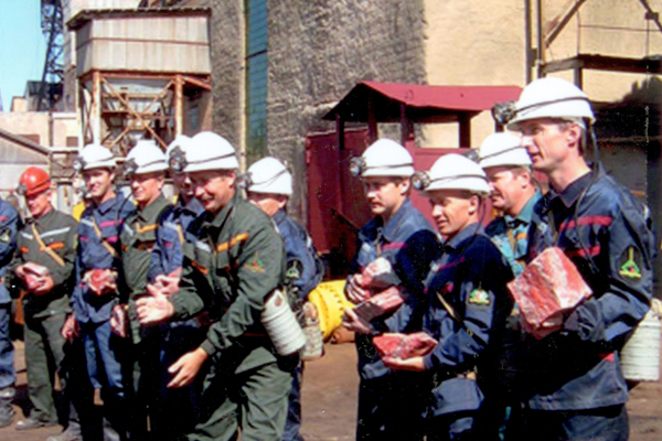 Кастрычнік. Сбойка гарызантальных горных выпрацовак шахтнага поля 4РУ & nbsp; & nbsp; з вертыкальным шахтавым ствалом Бярозаўскага рудніка. Ажыццёўлена & nbsp; & nbsp; ўпершыню ў сусветнай практыцы будаўніцтва руднікоў.